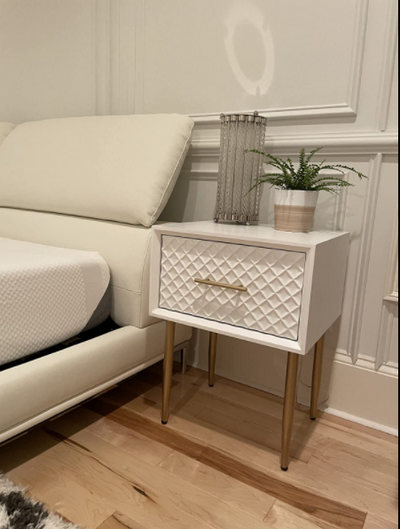 COZAYH HOME Contemporary Nightstand, Retro-Inspired Raised Diamond Motif, White
